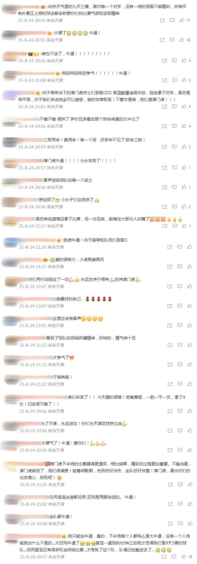 8月24日讯 在中超联赛第22轮中,天津津门虎客场1-1战平上海海港。此役津门虎表现出色,并一度占据优势,这样的表现为他们赢得了球迷的广泛认可。